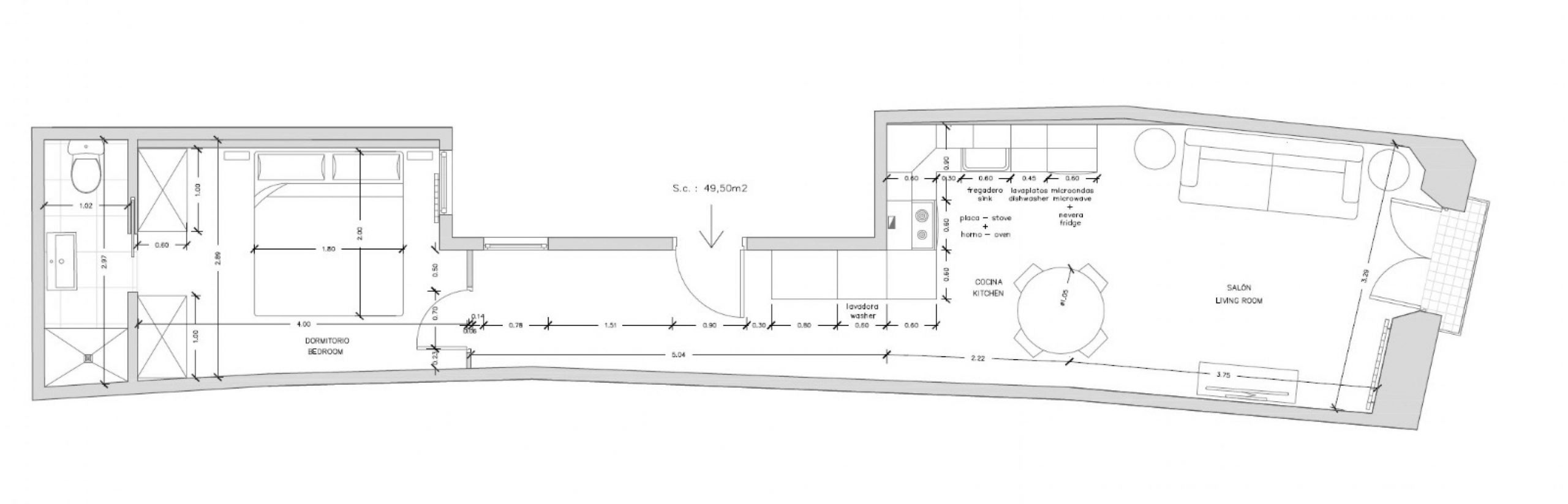 Consta de un luminoso salón comedor con salida a balcón, cocina americana completamente equipada, una habitación doble con armarios, baño completo con ducha, recibidor distribuidor y una pequeña zona de estudio.