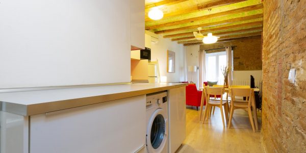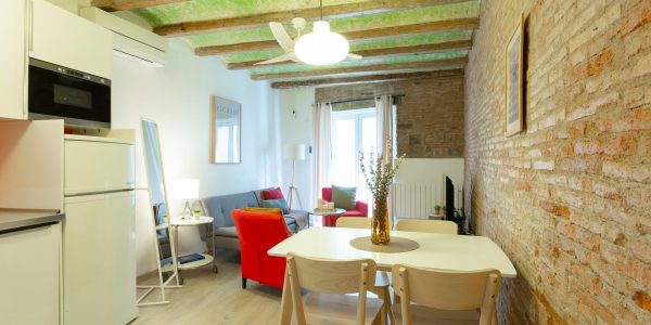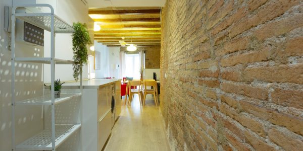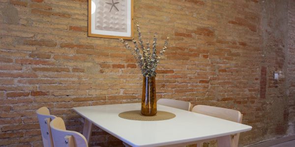 Tiene suelos de parquet, techos con volta catalana y paredes de ladrillo visto, lo que aporta carácter a las estancias. Hay aire acondicionado y calefacción.